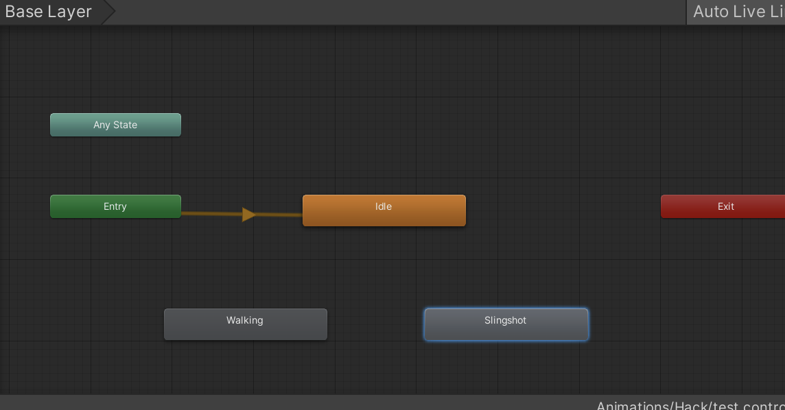 - To create the transitions, you have to right-click any animation then "create transition" and point it to whatever state you want to transition to.